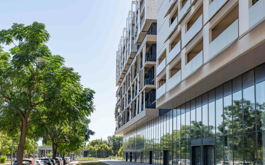 Son architecture, signée Estebe & Cathala, s’intègre harmonieusement dans le paysage montpelliérain grâce à ses matériaux élégants (béton blanc, menuiseries aluminium, terrasses généreuses) et à son cœur d’îlot paysager, véritable espace de rencontre et de convivialité. 🌳