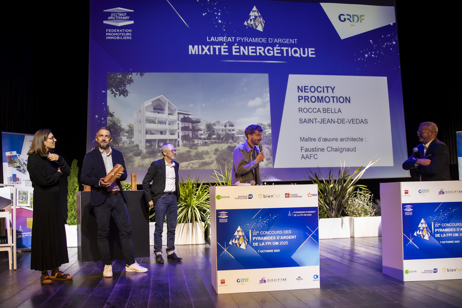 Nous sommes heureux d’annoncer que la résidence Rocca Bella, située à Saint-Jean-de-Védas, a reçu le Prix de la Mixité Énergétique dans le cadre des Pyramides d’Argent 2025, remis le 7 octobre.